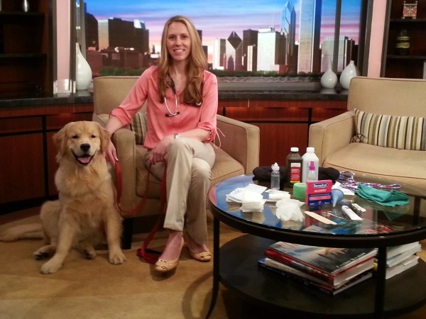 On April 2nd, I was on the WGN midday show with Steve Sanders speaking about pet first aid tips and how to keep pets safe this spring. I was accompanied by a very well behaved 8 month old golden retriever named Pappy Van Winkle. I reminded viewers the importance of keeping pets up to date on vaccines, monthy heartworm and flea and tick prevention, and showed how to make a pet first aid kit. Many of the items you already have in your home!